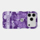 Customize this blingy purple camouflage iPhone 17 pro case with a purple satin bow with a diamond center and your name in a trendy modern CAP font in dark purple on light purple. It's so blingy, girly and chic! Perfect for any country girl!