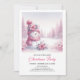 Blissful Snowy Pink Snowman Editable Kids Christma Invitation