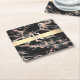 Blk & Rose Gold Marble Gold Bar, Wht Name Monogram Square Paper Coaster