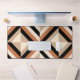 Design moderne de bureau mat avec des rayures géométriques dans les tons bruns chauds avec un contraste de noir.