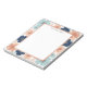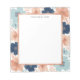 The design incorporates abstract floral patterns in shades of blue, peach, and white. A rose gold border frames the main writing area, which includes placeholder text for customized names. You can easily modify the text, font, and color palette to suit your preferences.