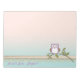 A moderne girly and cute design of cartoon owl on pink and blue background with lace.