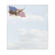 Bloc-notes de 5,5 po x 6 po avec l'image d'un drapeau américain agitant et d'un aigle chauve en vol contre un ciel bleu nuageux. Voir l'ensemble du Bloc-notes Patriotic 40s dans les TOUCHES SPÉCIALES | Section Favoris.