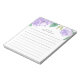 Le bloc-notes floral chic est doté d'une bordure supérieure de fleurs de pivoine aquarellée en violet lavande avec des feuilles verts luxuriants. Personnalisez avec deux lignes de texte personnalisé en lettres modernes ; avec le message de bienvenue français "bonjour" et votre nom. Avec lignes.