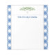 Ce bloc-notes bleu en vichy classique a été conçu pour coordonner avec la collection de en vichy VG Invitations. Il présente une illustration d'une arborescence avec espace pour ajouter votre texte personnalisé. Personnalisez avec votre nom de famille, monogramme ou tout ce que vous voulez. Pour en savoir plus sur les modèles preppy avec chèques plaid, visitez www.zazzle.com/vginvites