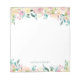 Ce bloc-notes charmant et branché présente un arrière - plan blanc propre avec une bordure d'aquarelle magnifique pleine de fleurs dans les tons rose, ivoire, blanc et pêche avec beaucoup de feuilles verts et turquoises