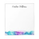 Bloc-notes moderne avec une bordure d'aquarelle bleu et violet aqua en bas et votre nom en haut dans une police de script mignonne.