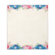Bloc-notes avec cadre bleu, rose et blanc sur le dessus et le fond.