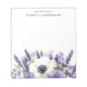 Un beau bloc-notes personnalisé avec un délicat bouquet floral de fleurs violettes et blanches, entouré d'une végétation luxuriante. L'agencement élégant orne la bordure inférieure, créant un design sophistiqué et élégant, parfait pour ajouter une touche personnelle à vos notes et à votre correspondance.