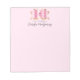 Bloc-notes avec un arc brillant avec contour doré et une pierre à gemme rose facettée au centre. Style luxe féminin glam style.
