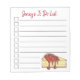 Le design du pavé de notes de la liste de contrôle TO DO présente une illustration originale d'une tranche classique de fromage de cerise de style NYC. Personnalisez simplement vos informations. De nombreux autres blocs-notes illustrés sont également disponibles dans cette boutique. Cette conception est également disponible sur d'autres produits. Ne vois-tu pas ce que tu cherches ? Vous avez besoin d'aide pour la personnalisation ? Contactez Rebecca pour avoir quelque chose conçu pour vous.