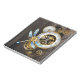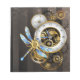 Cadran d'antiquités avec or et lances en laiton, décoré de libellules mécaniques sur arrière - plan brun rayé. Steampunk.
