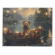 Jetez un coup d'oeil à la magie de la saison des Fêtes avec cette illustration magnifiquement détaillée, montrant un chien fier assis dans un bateau à la décoration festive, glissant à travers un lac serein de Noël. Les lumières scintillantes des pins voisins se reflètent dans l'eau, projetant une lumière chaude et festive qui renforce l'ambiance cosy. Des ornements pendent des côtés du bateau, tandis que des lanternes brillantes éclairent le chemin, créant une scène qui capture l'essence véritable de la chaleur et de la joie de Noël. Cette oeuvre nostalgique apporte une touche de magie de vacances à tout espace, parfait pour ceux qui chérissent l'esprit de la saison.