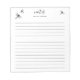 Ce bloc-notes présente le design de silhouette de libellule noire de Destei. Il y a trois libellules en haut tandis que la majeure partie du bloc-notes est lignée de fines lignes noires. Le haut du bloc-notes comporte également des zones de texte personnalisables pour un titre et pour un nom.