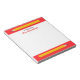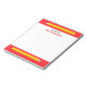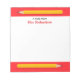 Bloc-notes avec crayons jaunes sur un arrière - plan rouge. Nom et texte personnalisables "Une note de".