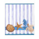 Aquarelle originale peinte par Sandra Gale, avec des étoiles de mer, des chevaux, des tortues et des coquilles sur un arrière - plan de bandes bleues translucides verticales. Conception idéale pour l'été, les maisons de plage, les bungalows ou pour tous ceux qui aiment la plage, l'océan ou le poisson.