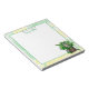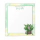 Bloc-notes personnalisé avec un adorable chaton gris dessiné à la main, assis dans un ancien seau de chatte. Arrière - plan en marbre vert et jaune.