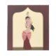 Une illustration mignonne d'une danseuse du ventre en couleurs bordeaux et jaune. Cette jolie fille porte un costume traditionnel de danse orientale arabe. Thème mignon des Mille et Une Nuits.