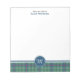 Tampon de note personnalisé avec bordure plaid et monogramme. Comprend l'ancien tartan pour Clan Duncan. Motif écossais clair vert, bleu et rouge à partir de 1880, aux accents noir et blanc.