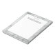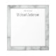Le bloc-notes a une élégante bordure en marbre faux gris. En haut de la zone d'écriture blanche, il y a du texte gris qui peut être modifié ou supprimé pour créer un message personnalisé. (Illustration : DU BUREAU DE Michael Anderson).