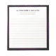 Un bloc-notes professionnel avec un design simple et moderne. Nom personnalisé et titre position rôle et entreprise ou texte personnalisé présenté sur un simple arrière - plan blanc encadré de violet avec des accents dorés. Personnalisez-vous en utilisant les champs fournis ou utilisez le bouton "message" pour contacter le concepteur pour obtenir de l'aide.