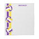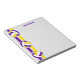 Ce bloc-notes à thème volleyball dispose de 3 volleyballs couleur équipe avec des panneaux violets, or et blanc surplombant des bandes de varsity violet et or orientés verticalement sur le bord gauche - le nom de l'entraîneur est personnalisable - par katz_d_zynes