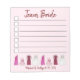 Le design du Bloc-notes présente une illustration originale de robes de fête de mariée (demoiselle d'honneur, fille à fleurs, mère de la mariée, mariée) avec TEAM BRIDE dans une police amusante. Personnalisez simplement avec vos informations de mariage. De nombreux autres blocs-notes illustrés sont également disponibles dans cette boutique. Cette conception est également disponible sur d'autres produits. Ne vois-tu pas ce que tu cherches ? Vous avez besoin d'aide pour la personnalisation ? Contactez Rebecca pour avoir quelque chose conçu pour vous.