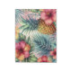 "Tropical Bloom" Un motif tropical vivant et coloré, aux ananas mûrs niché au milieu de luxuriants feuilles de palmiers turquoises et aux fleurs d'hibiscus vibrantes, dans les tons rouge, rose et orange. Ce design saisit l'essence d'un paradis tropical, mêlant une flore exotique à une ambiance fraîche et estivale.