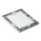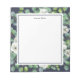 Élégant bloc-papier avec fleurs blanches, feuilles d'eucalyptus et verdure, sur un arrière - plan bleu marine avec un modèle de nom personnalisé. Une papeterie personnalisée féminine qui ferait un cadeau réfléchi pour maman, grand-mère, soeur, tante, etc.