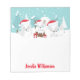 Ce bloc-notes mignon et amusant peut être personnalisé avec un nom. L'aménagement comprend une adorable famille de renards arctiques dans un cadre merveilleux en hiver avec des arbres enneigés. Les renards aux chapeaux de Santa apportent une touche festive. Dans l'arrière - plan se trouve un ciel vert bleu turquoise et des flocons de neige tombants.