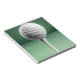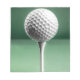 Une balle de golf blanche sur un tee blanc devant un arrière - plan vert.