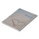 Joli bloc-notes personnalisé sur le thème de la plage avec un coeur dessiné dans le sable par l'océan bleu tropical. Des notes personnalisées mignonnes avec un modèle de nom customisé et un texte au-dessus du nom dit "une note de".