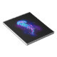 Grande méduse bleue, artistiquement dessinée, brillante, brillante, avec de longues tentacules sur arrière - plan noir avec bioluminescence violette. Méduse brillante.