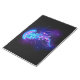 Grande méduse bleue, artistiquement dessinée, brillante, brillante, avec de longues tentacules sur arrière - plan noir avec bioluminescence violette. Méduse brillante.