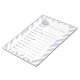 Lavande et baby shower gris d'éléphant - souhaits pour le bloc - notes de bébé. 100% personnalisable. Préparez pour compléter les boîtes ou pour cliquer sur dessus le bouton de PERSONNALISER pour ajouter, déplacer, supprimer, remettre à la côte ou changer la police ou les graphiques l'uns des. Fait avec le vecteur de haute résolution et/ou les graphiques numériques pour une copie professionnelle. NOTE : (C'EST UNE COPIE. Toutes les conceptions de produit de zazzle sont des "copies" sauf indication contraire sous la région "au sujet de ce produit") que la conception sera imprimée exactement comme vous voient qu'elle sur l'écran et sur le produit… satisfont ainsi s'assurent quand vous faites vos changements sur remettre à la côte des graphiques ou du texte l'uns des qu'il adapte dans les secteurs correctement et que votre orthographe et mots est comment vous les aimez pour être dans la taille, couleur et police. Si vous faites visiter n'importe quelles questions au sujet de cette conception svp me contacter chez siggyscott@comcast.net ou mon lien de magasin : http://www.zazzle.com/designsbydonnasiggy?rf=238713599140281212 (copie et pâte) je serai heureux d'aider. Merci pour l'appui et arrêt par mon magasin - DesignsbyDonnaSiggy. © Donna Siegrist