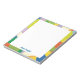 Colorful intersecting shapes create a lively abstract border for this notepad.