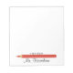 Parfait pour les éducateurs de tous les niveaux, ce bloc-notes personnalisé pour enseignant dispose d'un graphique de crayon rouge charmant qui le rend instantanément reconnaissable comme papeterie pour enseignant. Le design épuré et minimaliste avec "A Note From" suivi de votre nom personnalisable crée une touche professionnelle et amicale pour les communications parents, les notes d'élèves, les rappels en classe et les messages de remerciement. L'élégante typographie de script ajoute chaleur et personnalité tout en maintenant le professionnalisme. Un grand espace d'écriture permet de recevoir des messages détaillés, des instructions d'affectation ou des rappels rapides. Idéal pour les enseignants du primaire, du moyen ou du secondaire, les éducateurs de l'école à domicile, les tuteurs, ou toute personne dans l'éducation. Fait un don réfléchi pour la semaine d'appréciation des enseignants, la saison de retour à l'école, les anniversaires des éducateurs ou les célébrations de la retraite des enseignants. Un ajout pratique et personnalisé au bureau de n'importe quel enseignant.