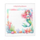 Set sail on a writing adventure with the "Mermaid Lagoon Notepad," a parfait companion for any child who dreams of underwater realms. This notepad bursts with life, featuring a radiant mermaid with a crown of ocean flora, her hair a cascade of pink waves. Le bottom is a treasure trove of marine life, with corals, starfish, and shells in a riot of colors. Les lignes await a young one's tales, lists, or drawings, with space at the bottom for personalization with their name. It's a charming choix for daily musings or sea-inspired stories.