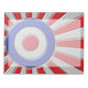 A Mod Target Roundel Asian Sunburst Design présenté ici sur une impression graphique de style fibre de carbone. Bon pour une réunion, un sport ou un cadeau avec un look industriel urbain automobile.