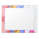 Un bloc-notes avec une bordure fantaisiste sur le thème de la montagne. Les couleurs/couleurs comprennent le rose, le violet, le jaune, l'abricot.