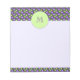 Ce bloc-notes dispose d'un motif géométrique moderne utilisant la combinaison de couleurs tendance violets et verts. Un cercle vert clair centré sur le dessus dispose d'un monogramme personnalisable.