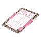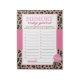 Bloc-notes pour Baby shower de jeu Leopard et Pink Memory Tray Afficher un plateau avec 20 articles, puis retirer le plateau. Demandez à vos invités de se souvenir du plus grand nombre possible d'objets. Qui gagne le plus, gagne ! Le plateau peut être affiché de façon décontractée tout au long de la douche ou pendant une période déterminée pour changer les niveaux de difficulté!