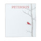 Pad de note de bouleau d'hiver. Le cardinal rouge brille sur un bouleau d'hiver. Note pad fait un grand cadeau pour n'importe qui. L'arrière - plan bleu peut être modifié pour s'adapter à n'importe quelle couleur. Personnalisez-le aussi.