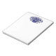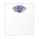 Un bloc-notes avec de l'art vintage en bois d'un panier de marguerites et autres fleurs en bleu et blanc.