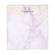 Marbre élégant et moderne imprimé dans des pastels doux de blanc et ultra violet et faux confetti doré pluie. Modèles pour votre nom et monogramme, lettre violette.
