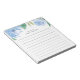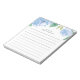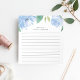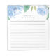 Le bloc-notes floral chic est doté d'une bordure supérieure de fleurs de pivoine aquarelle dans des tons doux de bleu avec des feuilles verts luxuriants. Personnalisez avec deux lignes de texte personnalisé en lettres modernes ; avec le message de bienvenue français "bonjour" et votre nom. Avec lignes.