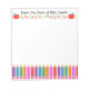 Éclaircissez votre bureau avec ce bloc-notes personnalisé et gai! Doté d'une bordure de crayon colorée en bas et d'une conception ludique de pomme et de trompette en haut, ce papier à lettres est parfait pour prendre des notes rapides, envoyer des messages à la maison ou garder organisé dans le style. Customisez avec votre nom pour une touche unique — fait un grand cadeau d'appréciation pour les enseignants ou un cadeau de retour à l'école pour vous-même!