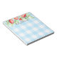 Cet élégant bloc-notes floral présente un rose de roses de mousse rouge sur un arrière - plan de plaid de buffle bleu et blanc aqua clair. Personnalisez votre nom monogrammé dans une typographie manuscrite moderne. Fait un cadeau unique pour toute occasion. Conçu par un artiste de renommée mondiale ©Tim Coffey.