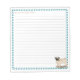 Faites un beau cadeau aux amateurs de carlin ou quelque chose de spécial pour vous-même. Notre modèle personnalisé Pug et Roses vous donne la possibilité de personnaliser les pages de ce bloc-notes pour y inclure votre nom, surnom ou votre propre slogan. La bordure de couleur sarcelle peut être changée en une couleur de votre choix. Cliquez sur le bouton Personnaliser pour voir une palette de couleurs de fond. Si vous préférez une version non lignée, vous pouvez effacer l'image qui contient les lignes. Utilisez ce bloc-notes pour écrire, noter, griffonner ou dessiner. L'image dans le coin inférieur droit montre un carlin fauve tenant quelques roses dans sa gueule.