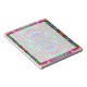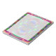 Bloc-notes de 5,5 po x 6 po avec une image d'une fantastique fractale bleue, verte, fuchsia et orange de rubans et arcs et un espace d'écriture transparent blanc. Voir l'ensemble de la collection Psychedelic 60s Notepad dans les TOUCHES SPÉCIALES | Section Favoris.